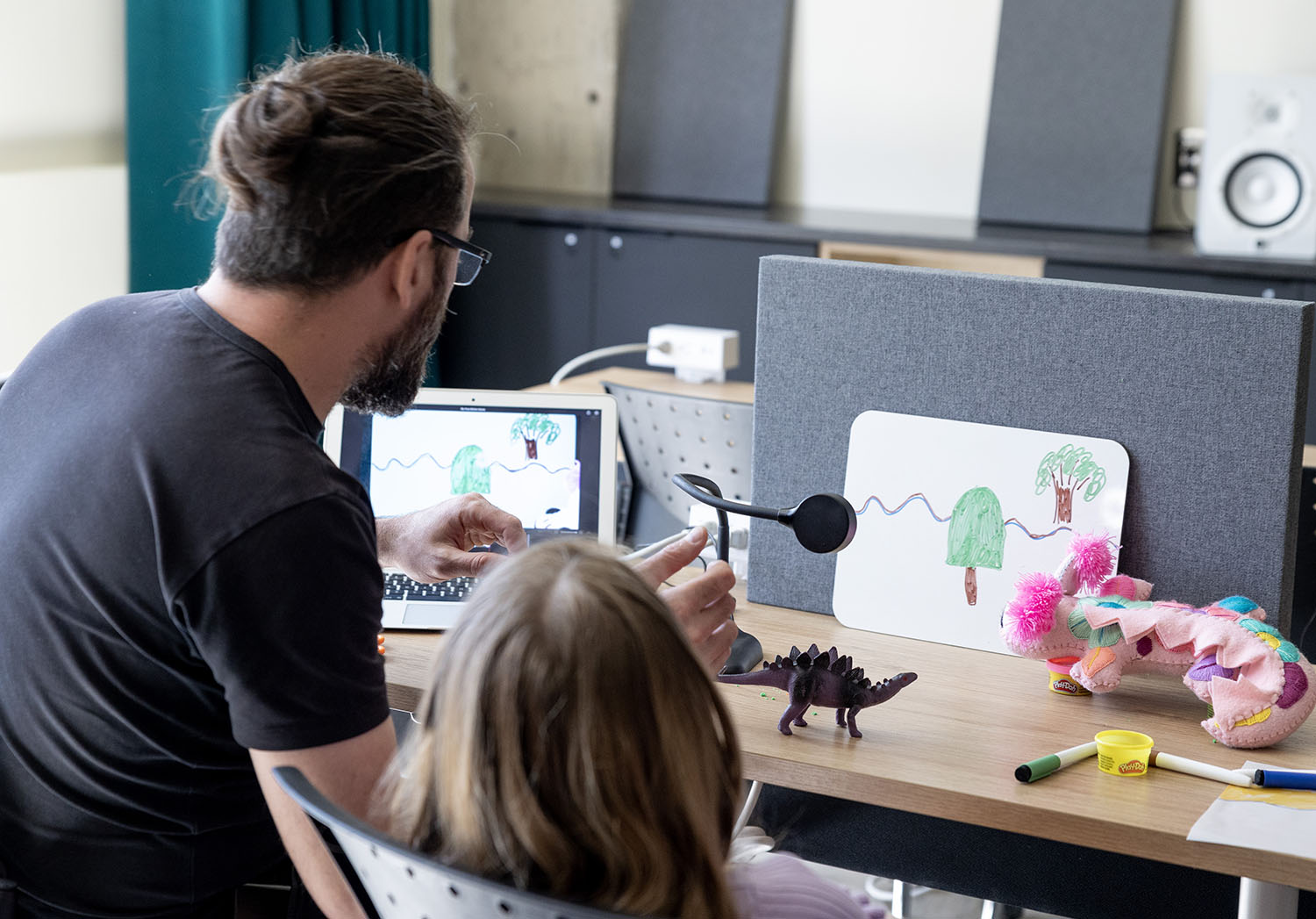 Animés par des artistes, les ateliers créatifs de la SAT initient les jeunes à des pratiques multimédias variées telles que la production audio, l’animation image par image, la création 3D ou encore la photographie.