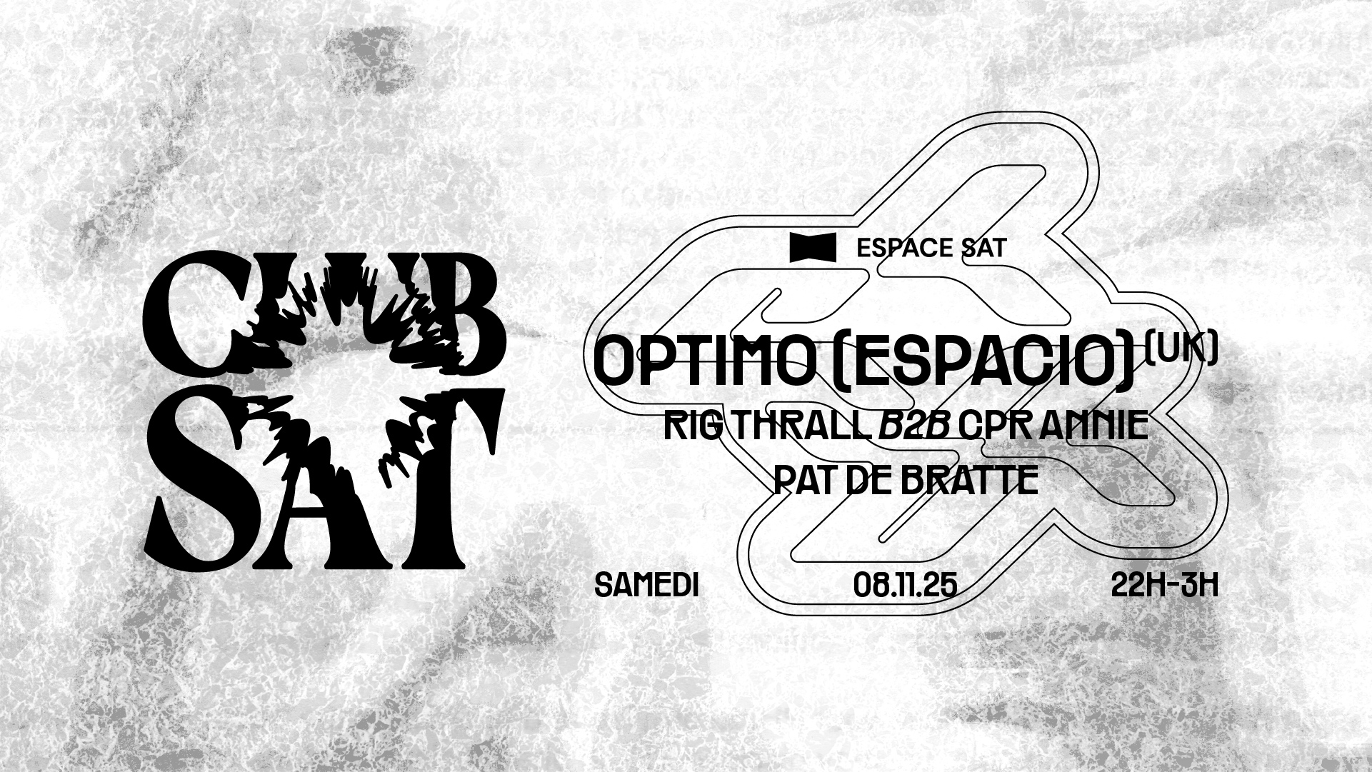 Optimo (Espacio) est de retour à la SAT pour une soirée clubbing underground et éclectique. Trois artistes de la scène électronique montréalaise ouvriront la soirée pour chauffer le dancefloor: Rig Thrall b2b CPR Annie et le DJ Pat De Bratte.