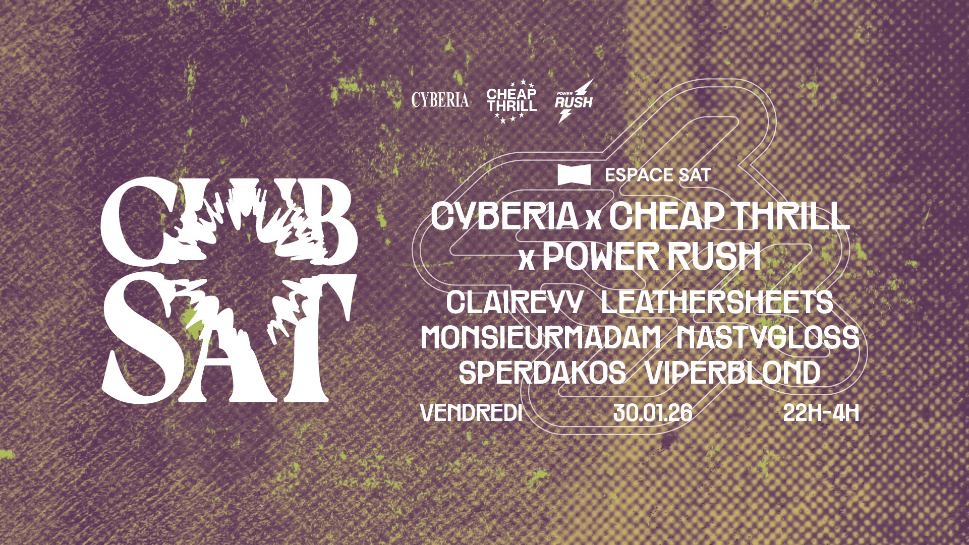 Aux commandes, Monsieurmadam, Nastygloss, Viperblond, Sperdakos, Claireyy et leathersheets. Avec l’expérience de Cyberia derrière nombre d’entre eux·elles, l’élan visionnaire de Cheap Thrill et la signature high speed de Power Rush, cette nuit promet une intensité rare — le dancefloor devient un espace de célébration collective, d’énergie non-stop et de connexion pure. Attendez‑vous à des sets mêlant techno, trance, electro et bass music, entre intensité brute, textures expérimentales et moments euphoriques.