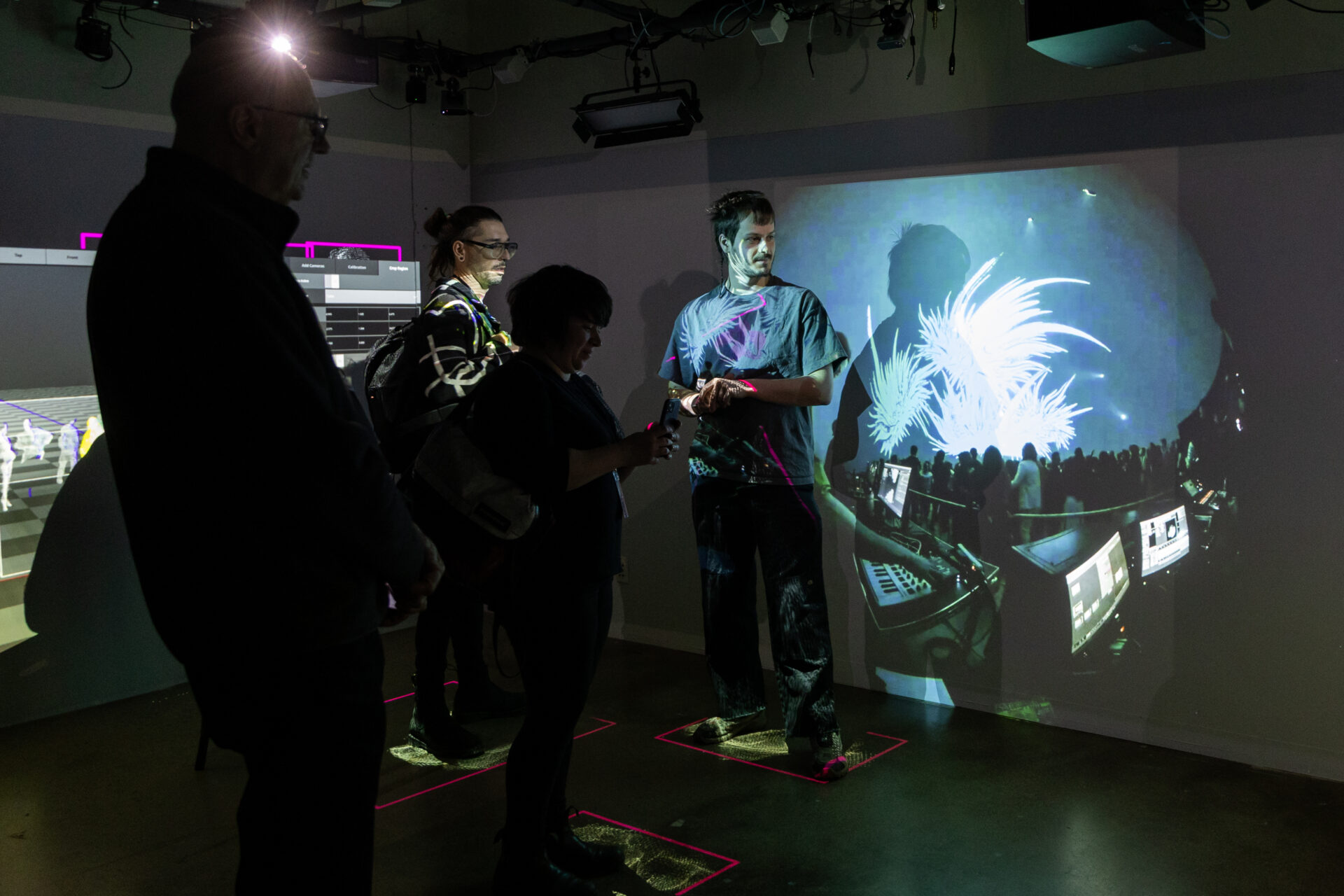 Un ensemble d’outils logiciels pour la création d’environnements immersifs et d’installations interactives: vision par ordinateur, IA générative temps-réel, spatialisation sonore, orchestration multimédia ou visualisation fulldome.