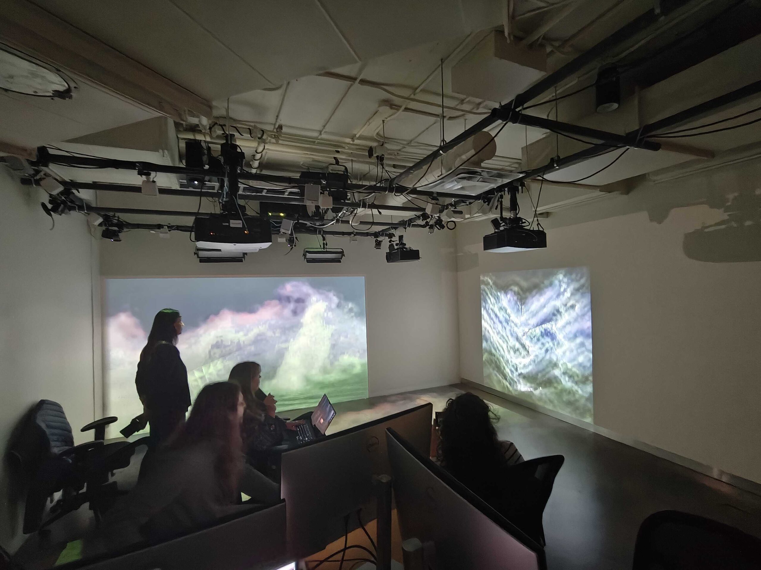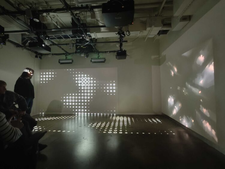 Par exemple, dans le cas de l’œuvre Organism + Excitable Chaos, la SAT a développé, en collaboration avec les artistes, un firmware de calibration personnalisé ainsi que des améliorations à la bibliothèque open-source libossia pour la communication réseau haute performance. Nous avons aussi exploré en profondeur l’utilisation de modèles d’IA locaux, en permettant à des créateur·rice·s tels que Eyez Li d’expérimenter avec des modèles d’IA locale sur des Raspberry Pi, par exemple.