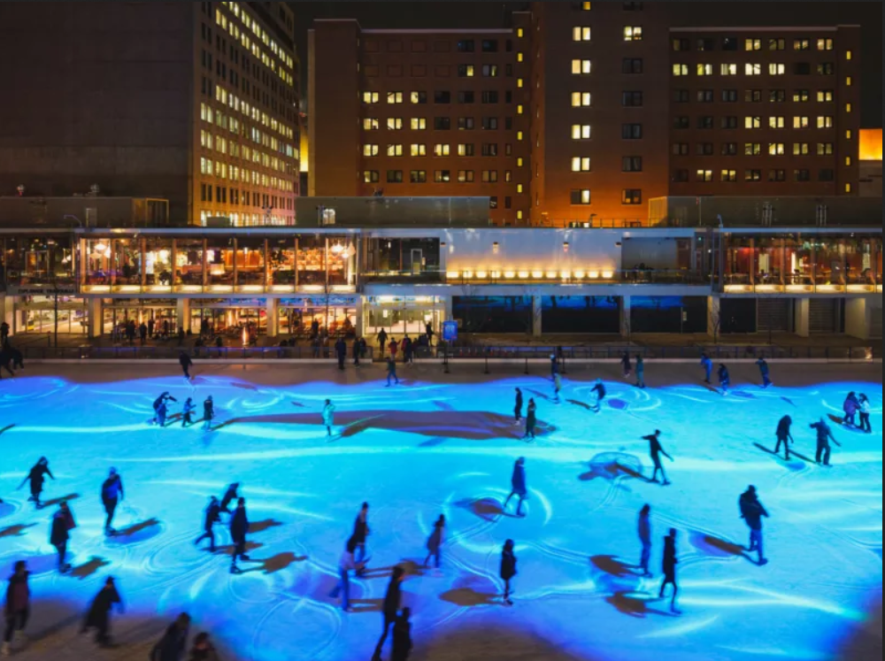 Projections interactives sur la patinoire de l’Esplanade tranquille. Crédit: Ulysse Lemerise