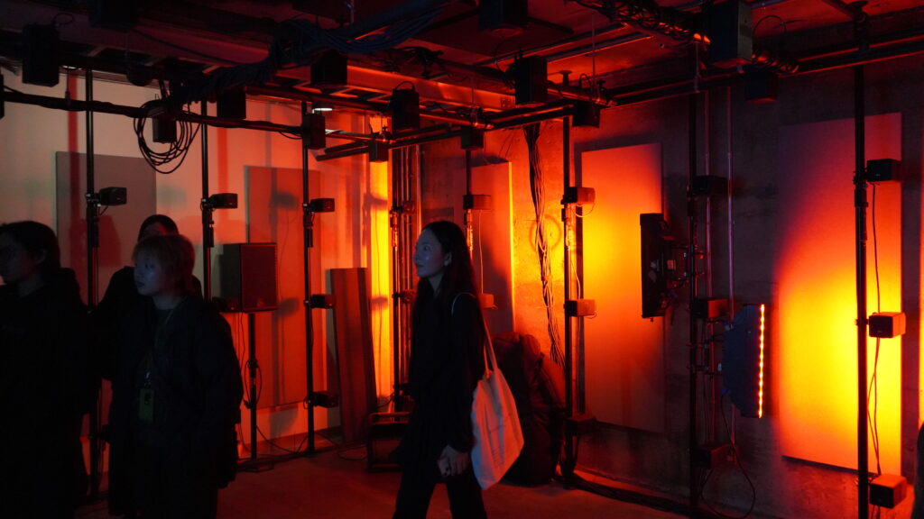 Approche de spatialisation décentrée, qui prend en compte la diversité des points de vue dans l’espace. Elle vise à créer une expérience immersive collective, fluide et ouverte à différents positionnements physiques et sensoriels.