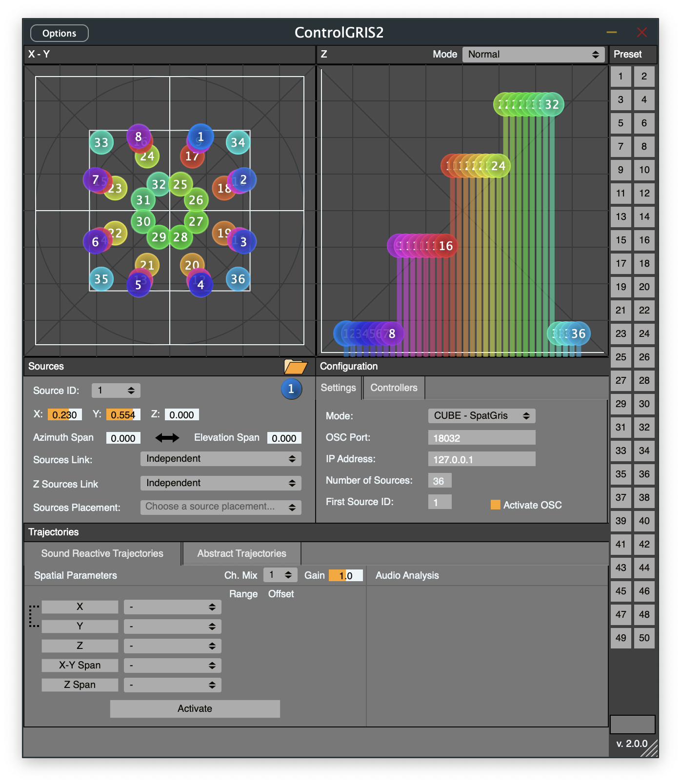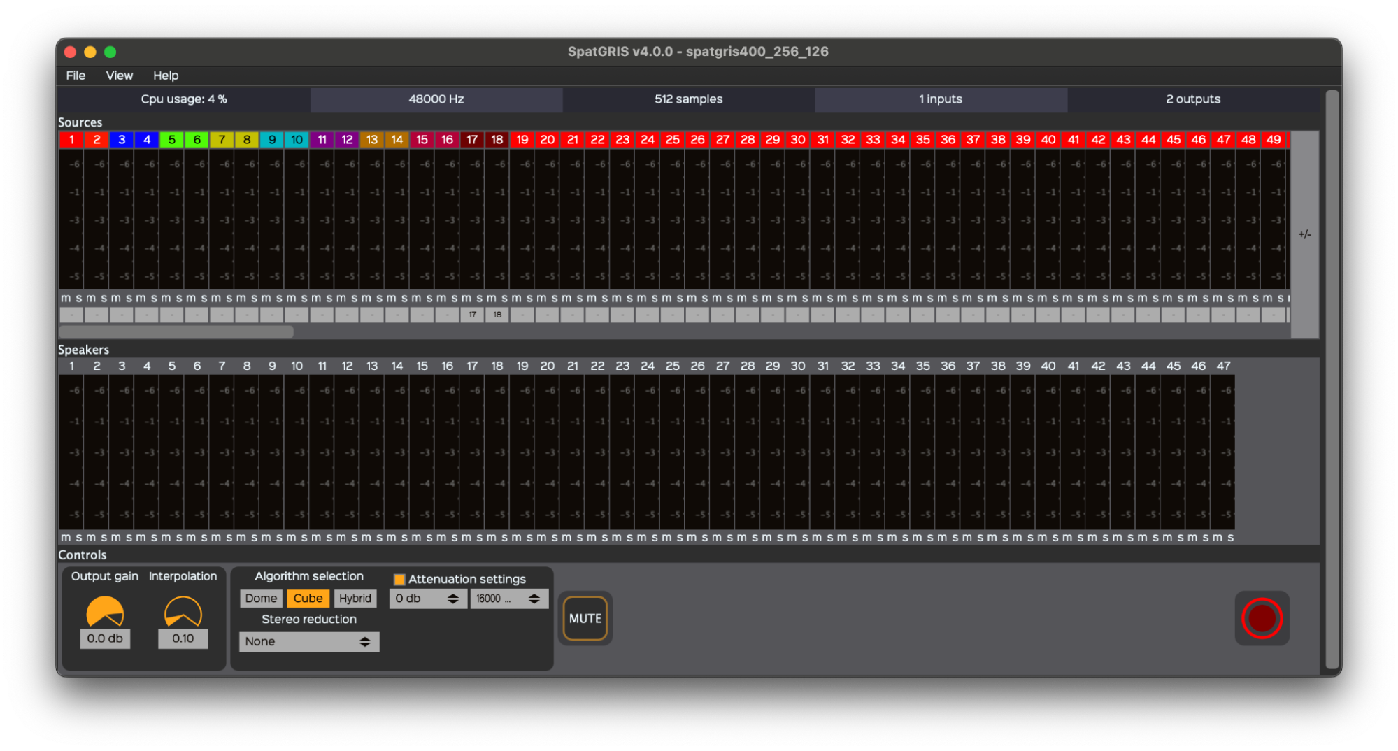 Cette démarche, ancrée dans une logique de collaboration et d’interopérabilité, a notamment permis de développer de nouvelles fonctionnalités dans l’environnement de spatialisation du Groupe de recherche en immersion sonore (GRIS). Parmi celles-ci figurent la création de groupes de haut-parleurs dans l’espace et le traitement parallèle de l’audio, qui permet la spatialisation d’un plus grand nombre de sources.