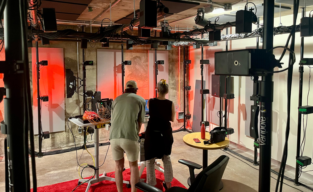 Le studio est également équipé d’un système de capture de mouvement corporel, permettant notamment une interaction en temps réel avec la spatialisation sonore, au besoin.